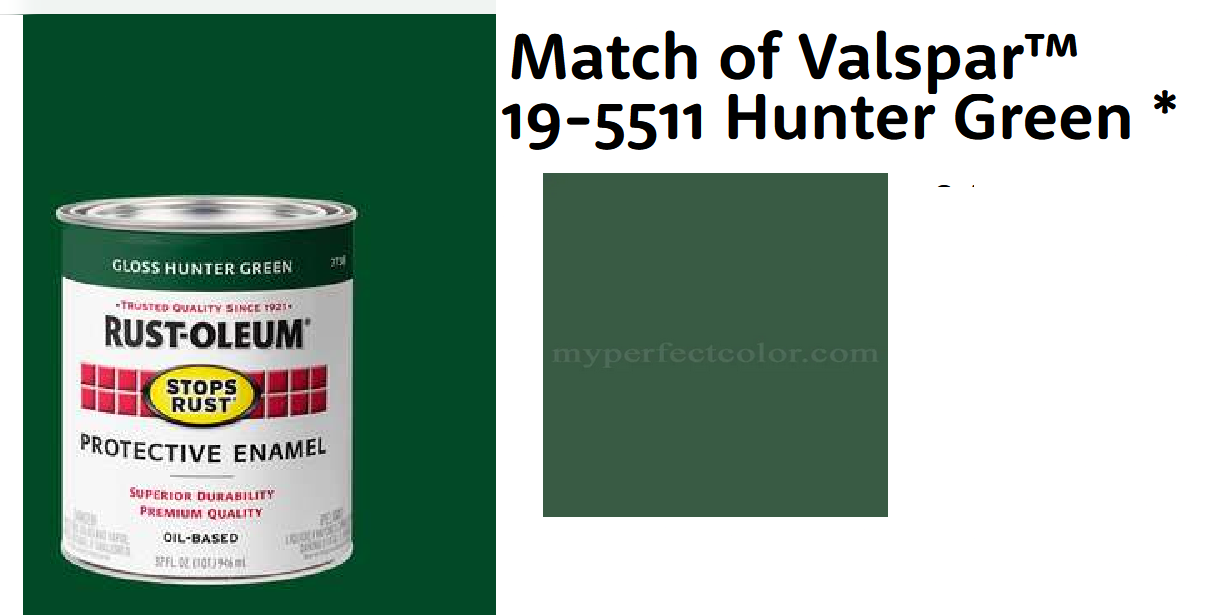 I used Valspar Hunter Green of these buckets. Had some Rustoleum Hunter Green in a spray can that was a shade darker than the Valspar