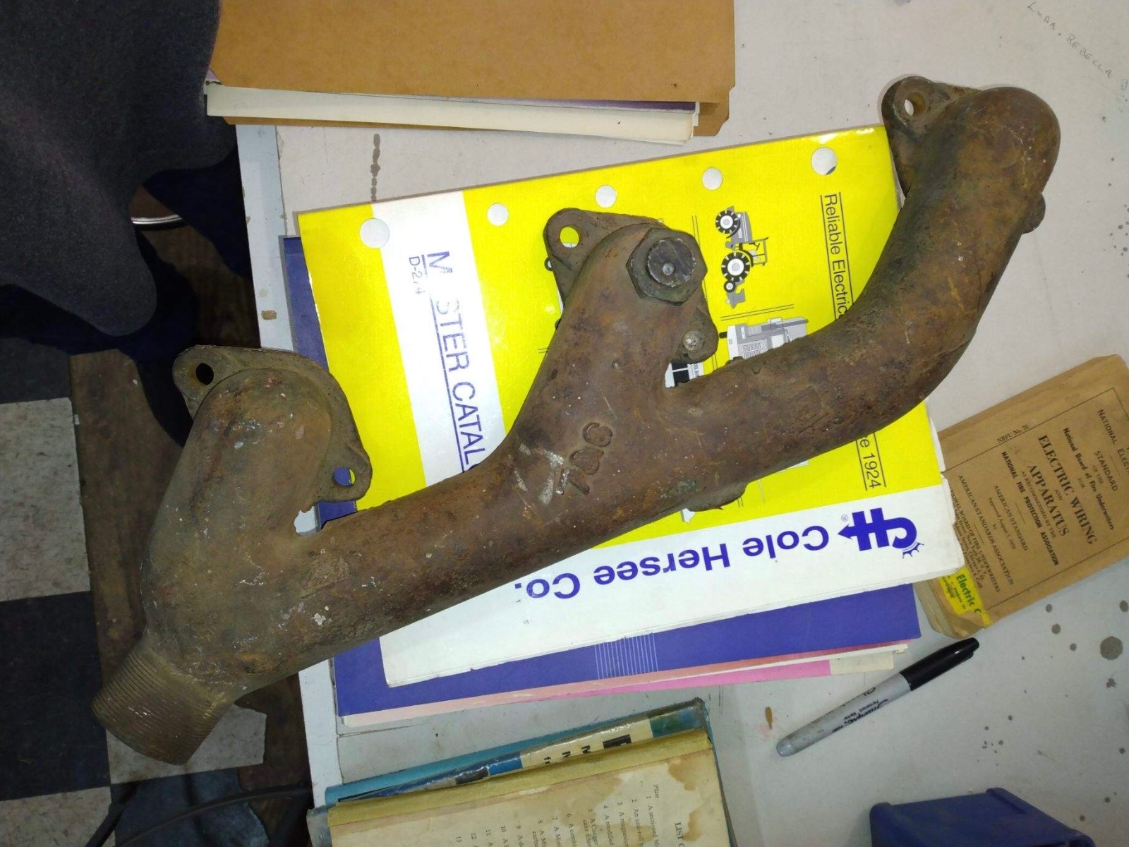 The C35 would be the closest interchange, but the RAJO center exhaust port is a large oval shape and is no doubt much larger than either of the Roof manifold center flanges. The head would have to have been drilled for the Roof bolts as well. However… the C35 also had 2 intake ports on the right side that the Liberty 8 exhaust manifold would have completely obstructed. Could it be a 2 port manifold with markings…? I’m with Dan, need some pics…