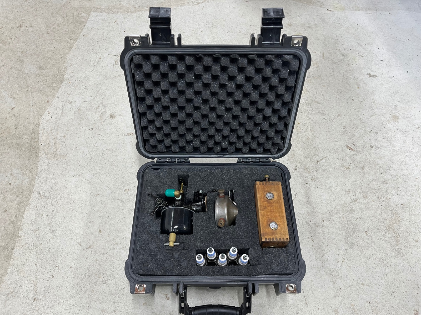 An old brief case makes a good toolbox also. I carry one in my modern car and keep standard and metric tools in it and have called on it many times for more than auto repairs.