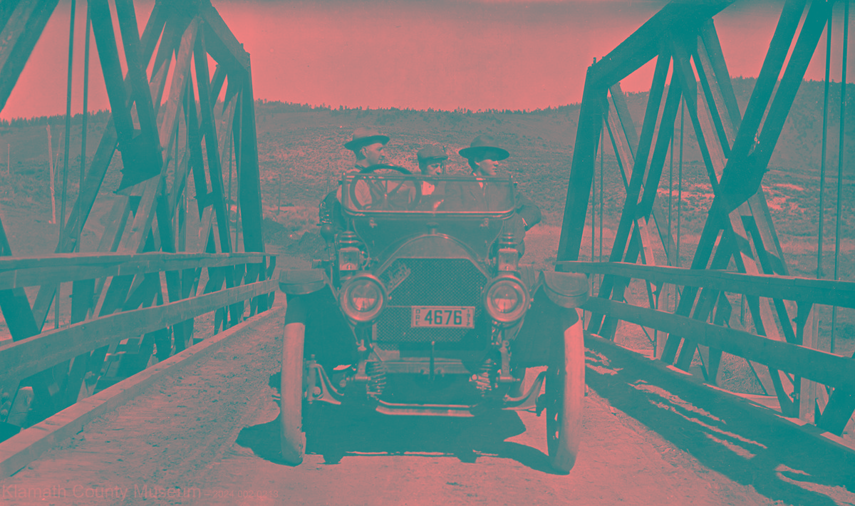 As a volunteer for the Klamath County Museum who frequently drives one of their Model Ts in parades (Model T drivers are in short supply here) I am sometimes asked to identify automobiles in old photos. This one has me stumped. The plates are from 1912 and it looks to be a big car. Can anyone ID it?