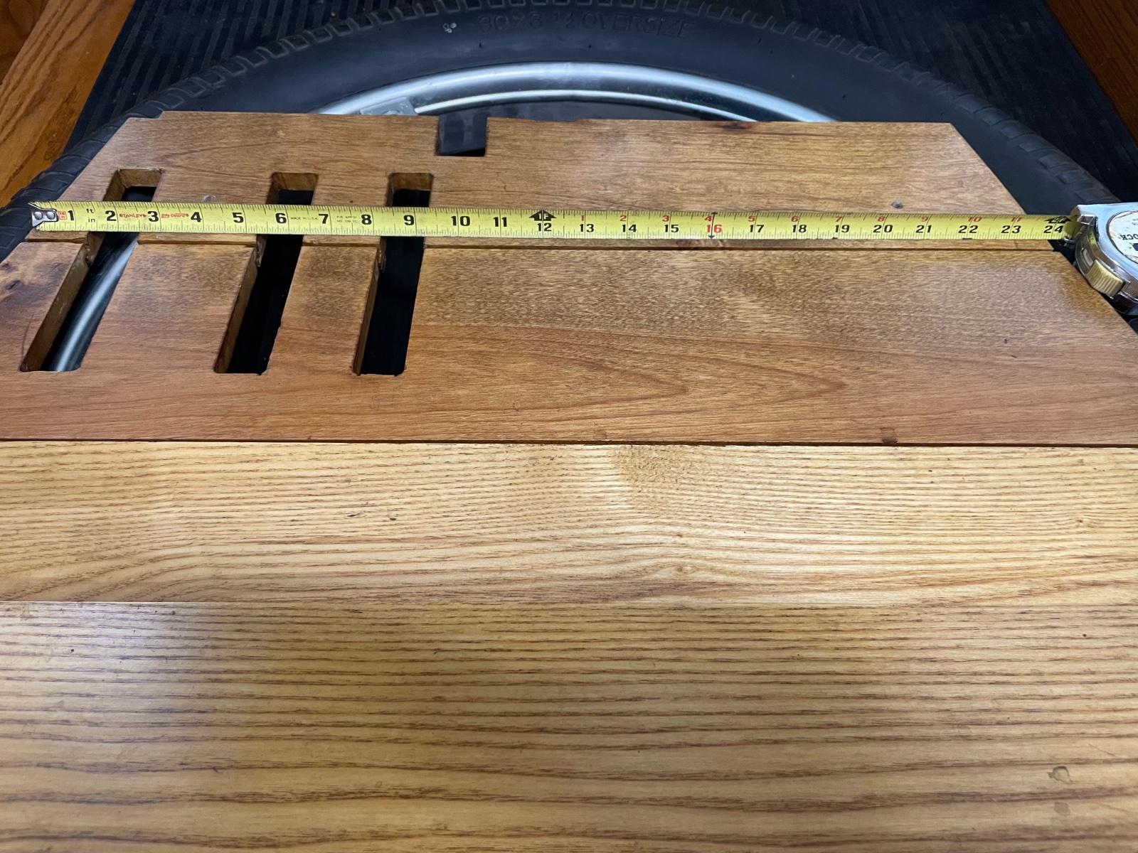 Here's some photo's & measurements from my 24 C Cab floorboards. Ordered from Lang's a few yrs ago. Waited over a year for their vendor to deliver, opted for hardwood but got 2 different types of oak. As you can see I added a foot throttle notch. The hinge in the middle helps installation. Hope this helps.