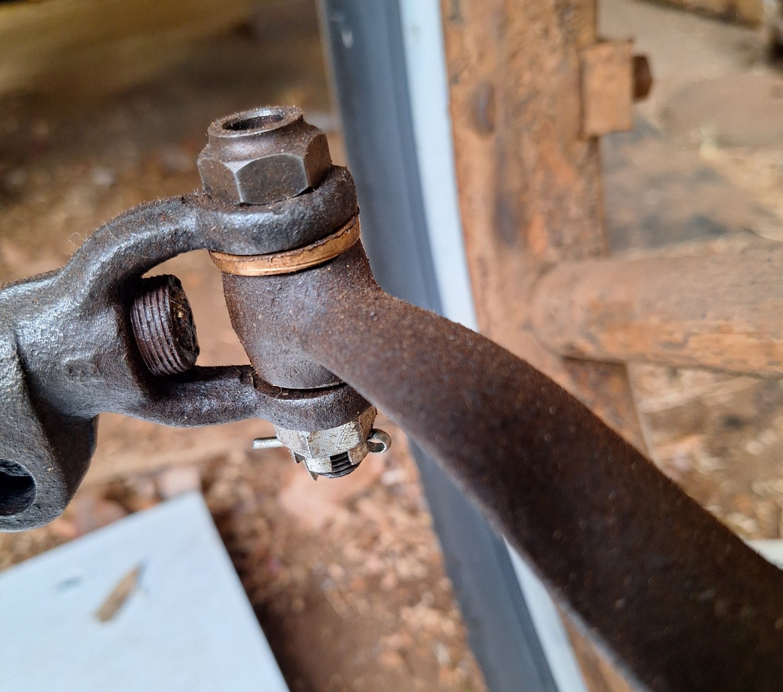 In a recent post I mentioned using worn kingpin bushes as replacement tie rod end bushes. These photos show why it was done on the barn fresh tourer on which I have been working.