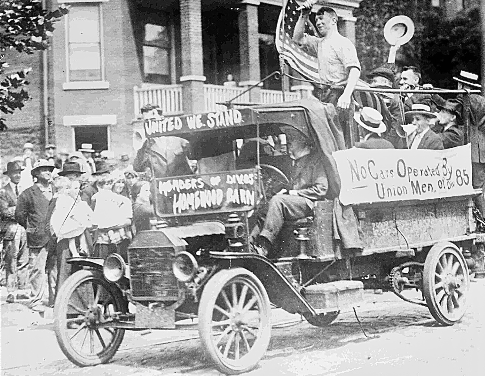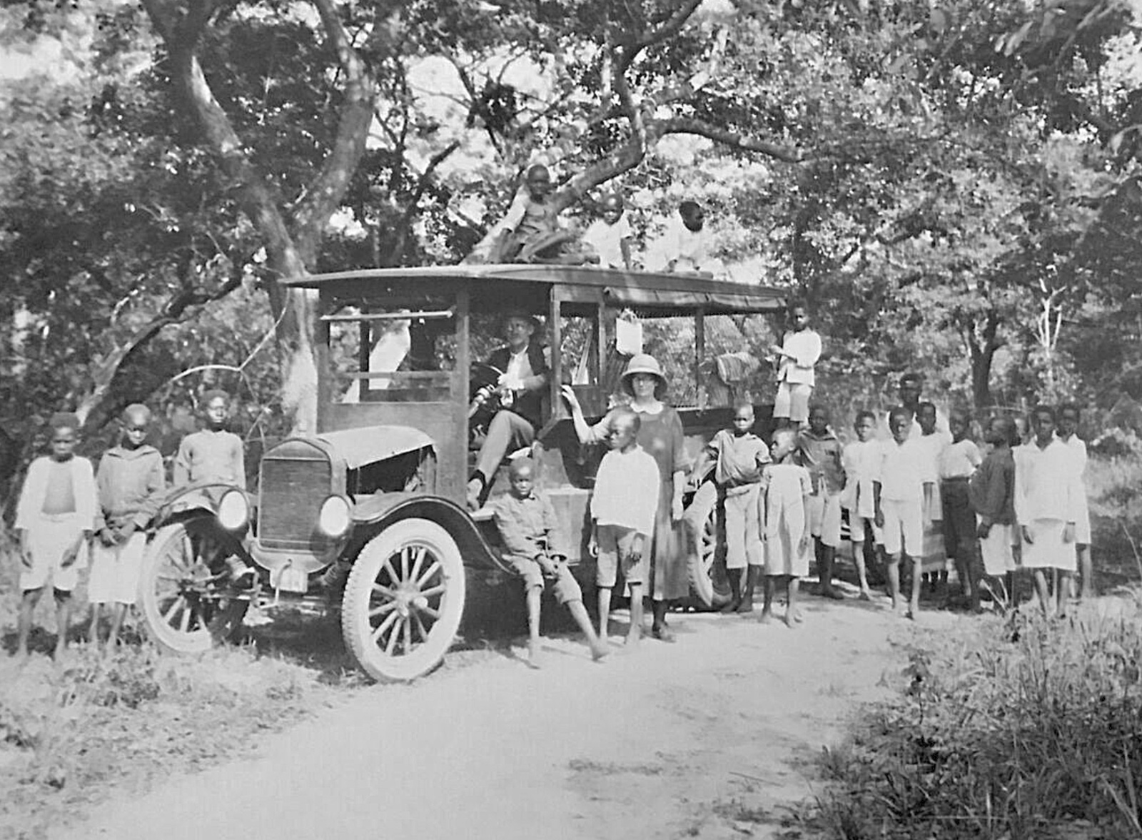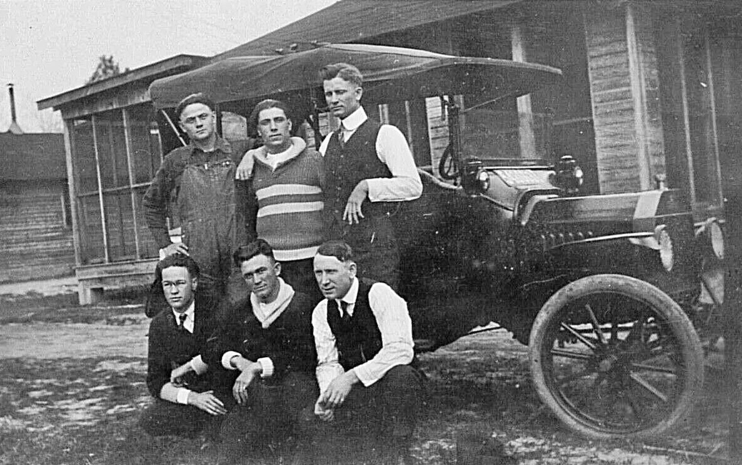Third picture. I see at least 3 kids on top of the Depot Hack. I don't think everyone in that picture can fit in it, but I guess some can sit on laps and others stand on running board. Other pictures. There are sure a lot of people who sit on the hood. Engine must not be hot! My family would never let me climb all over their cars. I once got in trouble for standing under the fender on the right side of my uncle's car. I was in a position where he could not have seen me if he had started to drive. The last picture. Has an interesting front spring modification.
