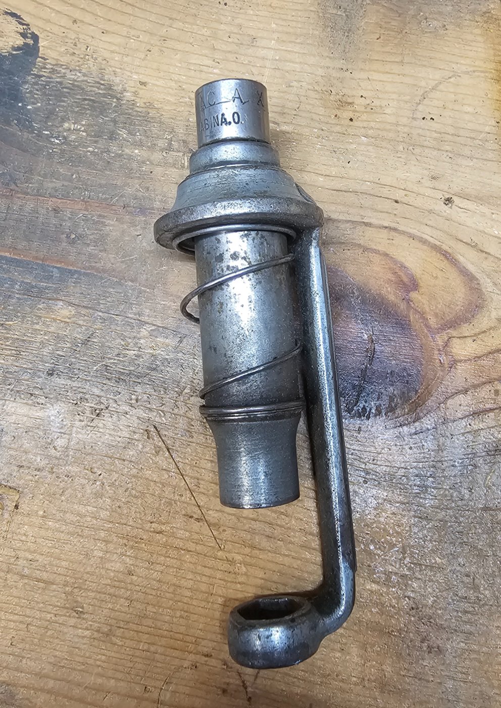 However, I doubt it is actually for a Model T pan wrench. For one thing, the gap is too great between the socket and the box end. With the spring fully expanded, they should touch.