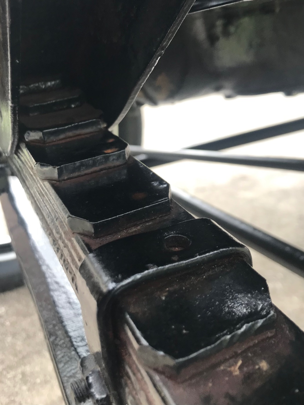 Here is a car that I believe has the wrong size front spring. I count nine leaves, which leads me to believe the spring is for a TT truck? The problem being encountered is that there is not room to tighten the castle nuts up to the hole for the cotter pin. Now I assume the smart and easy thing to do would be to drill new holes, but being as I’m not the smart kind I won’t be doing that. Can I simply remove a couple leaves in the current spring? And if so which ones? I have a larger TT spring carrier but I’ve never done such a swap.