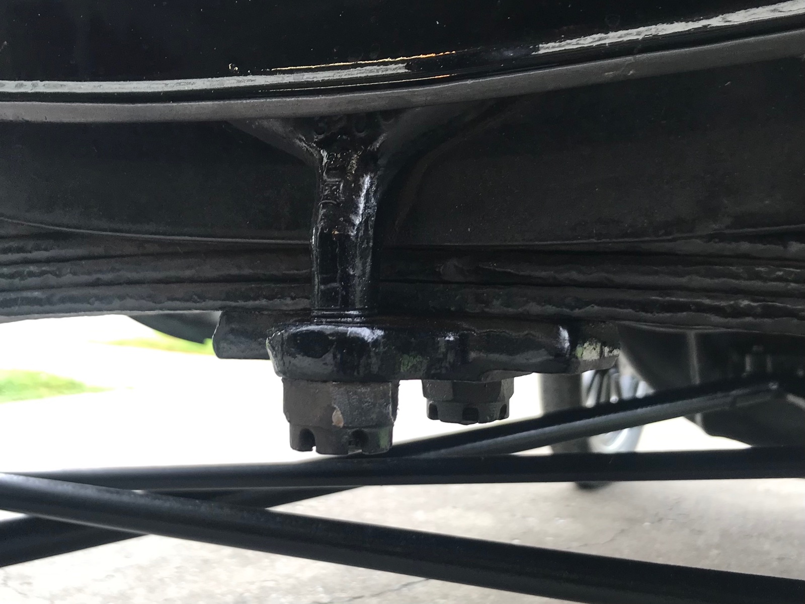 You have multiple issues besides 9 leafs.Tadpole wrote: ↑Sat May 04, 2024 12:37 pmHere is a car that I believe has the wrong size front spring. I count nine leaves, which leads me to believe the spring is for a TT truck? The problem being encountered is that there is not room to tighten the castle nuts up to the hole for the cotter pin. Now I assume the smart and easy thing to do would be to drill new holes, but being as I’m not the smart kind I won’t be doing that. Can I simply remove a couple leaves in the current spring? And if so which ones? I have a larger TT spring carrier but I’ve never done such a swap.
