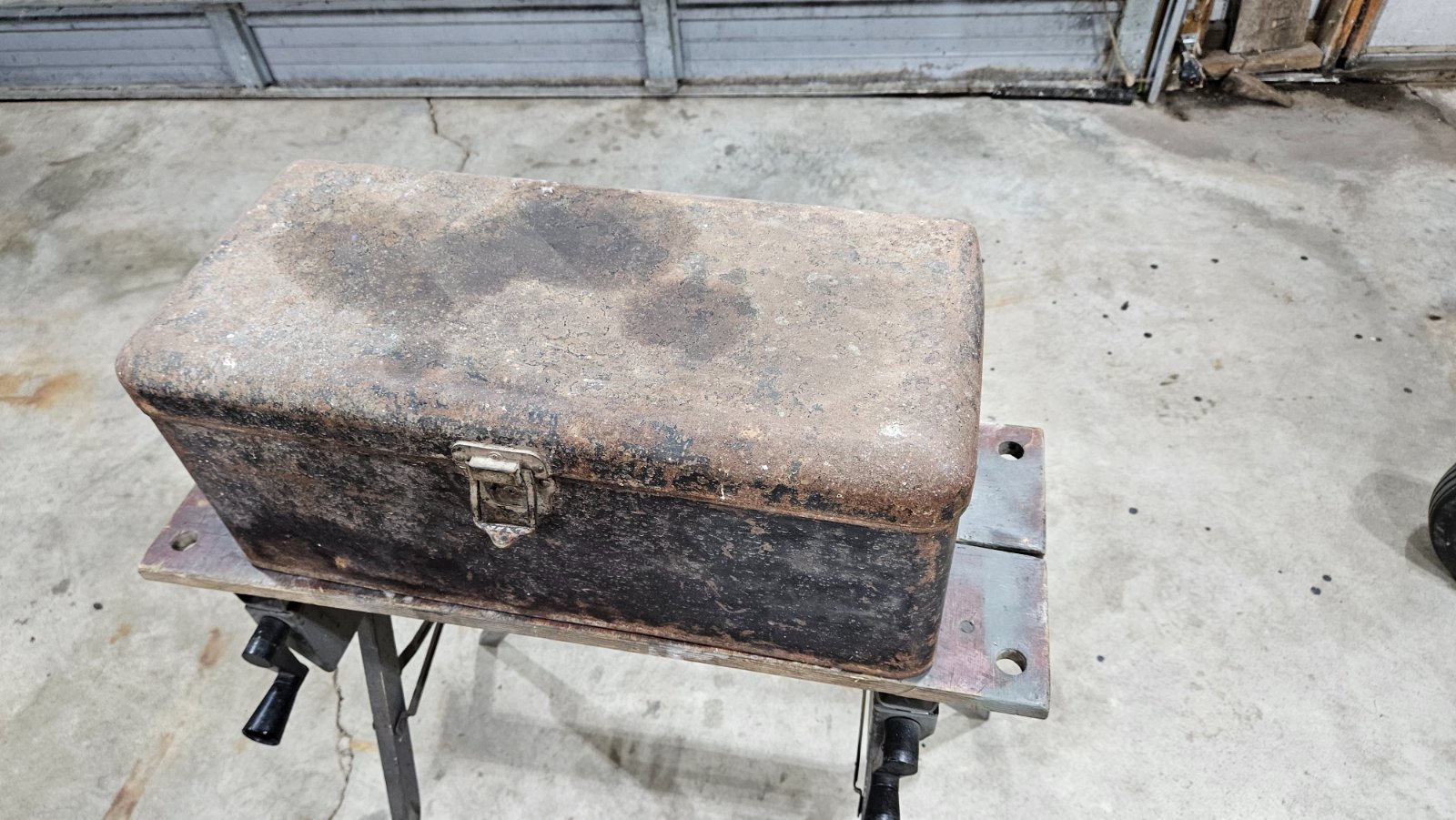 Does anyone have a Yale running board toolbox that looks similar to this? I am trying to determine if the top of the lid is supposed to be flat, or have a bow or crown in the outward direction. Mine is dented, and I want to make it right.