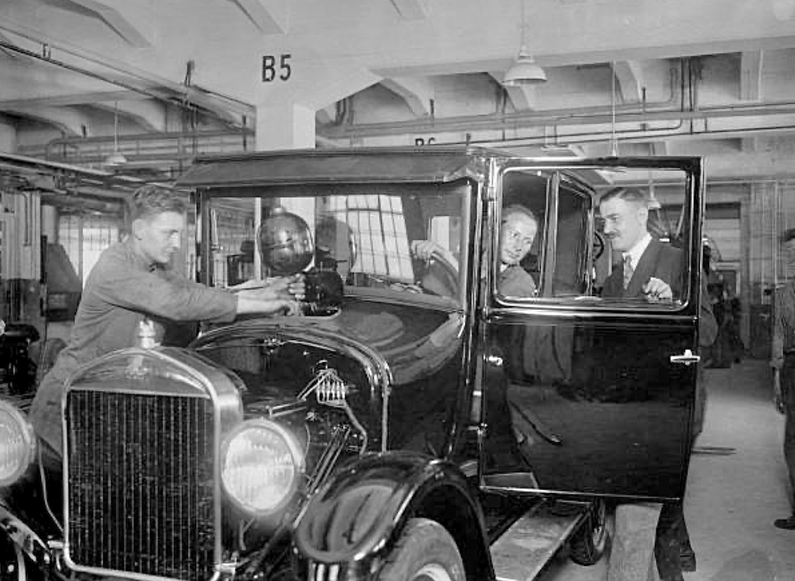 I think it is a two-man style top. Maybe not exactly like the ones Ford USA or Canada used but at least similar. Notice what appears to be the top iron under the driver's right hand. Also note that the bow stack is very similar to the one on our 1918. Sorry -- my T books are in a brown box among many other brown boxes so that is the best photo I can easily access.