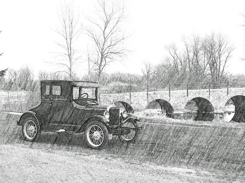 This is "Model T era" but not Model T. This post may be booted because of that. This is a charcoal drawing that I did 30 years ago. This was a local '24 Dodge Brothers Business Coupe that I almost bought.