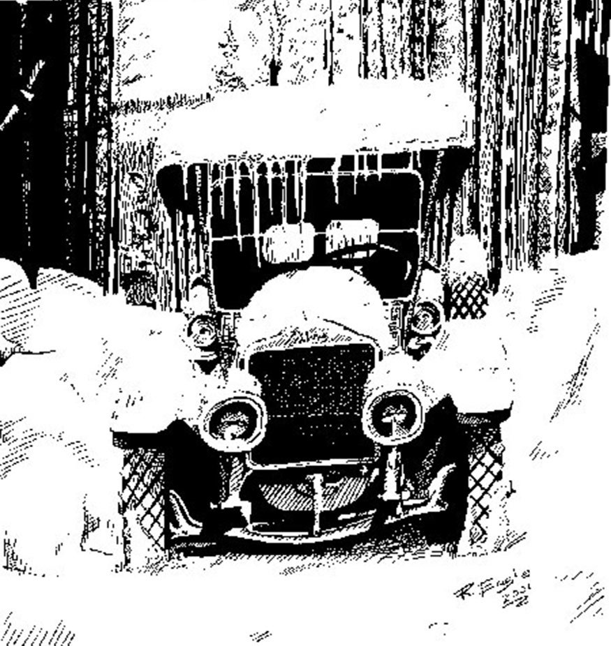 This time of year reminds me of the sketch I did for a nice lady in Florida. She wanted something with an old car for her Christmas card.