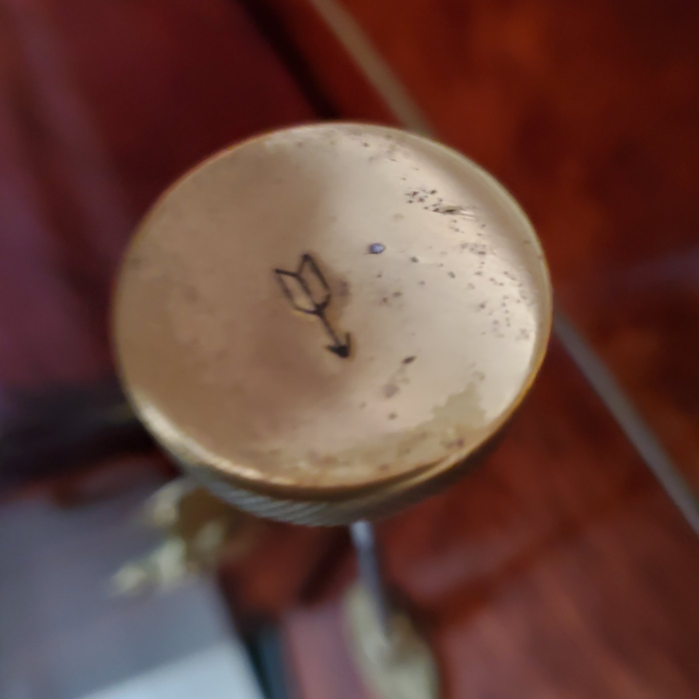 The best I could attempt to mimic on my faux '12 open express was to smack the face of the repro knob with the letter V from the stamp set.