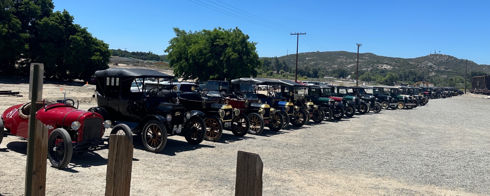 I was lucky. The only thing I had hit my radiator was a few bees and bugs. In fact the car is still so clean, I will take it down to the museum tomorrow afternoon just as it is. The last Saturday every month I take one of my T's to the Alpine Historical museum. Too bad the tour didn't stop here. Of course the parking is not big enough for that many cars. We have a buggy I helped restore and many other things from Alpine's past. This town started as a stage stop on the way to Julian. We had passengers in the back seat all but the final day of the tour. A couple things I noticed. 1. With 4 people I had to use Ruckstell a lot more than with just 2. Even when I am by myself I can climb hills in High I have to shift down with Dolores. The second thing was sometimes the noises of the engine seemed to smooth out and get quieter. Then my ears would pop and the noises were back! Last evening at the banquet Dolores got very tired. The oxygen machine wasn't working. I thought I had brought the wrong battery. When we got to the car we plugged it in to the charger and for some reason it started working and the battery was full! Guess when we installed it, it must not have made a good connection. She washed a week's clothes and went shopping today so she seems to be OK.