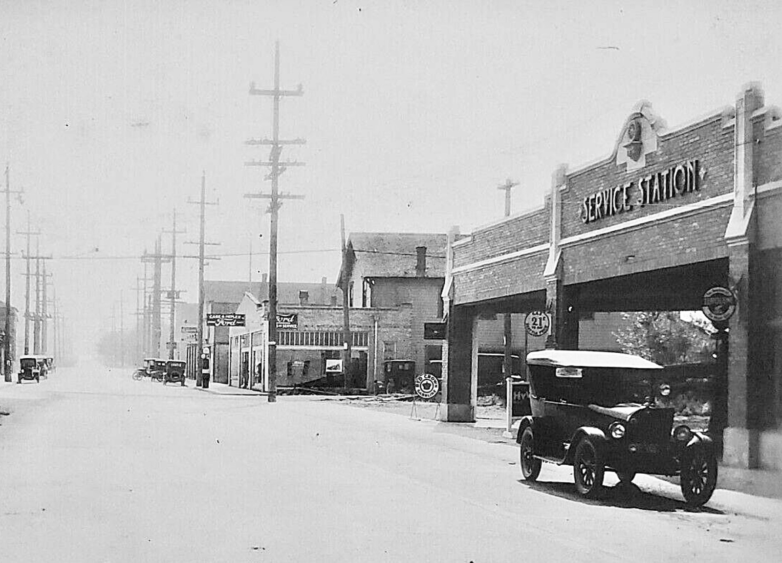 The 3rd photo from the top: Man standing beside ‘26 RPU - drinking a beer next to a cool ‘Mae West’ gas pump…I’ve previously seen this horrid method of expanding carrying capacity in another of Tom’s photos…I first considered he was resting his booted foot on a Splash Apron but further examination revealed whats probably a 1X12 cut on the curve of front and rear fenders and bolted to same !!!