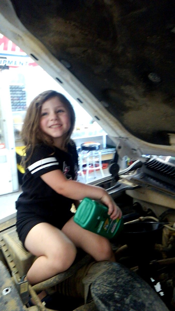 And then there's this one. This is my son's girlfriend's 4 year old daughter being trained how to properly change oil. Tomboy in the making.