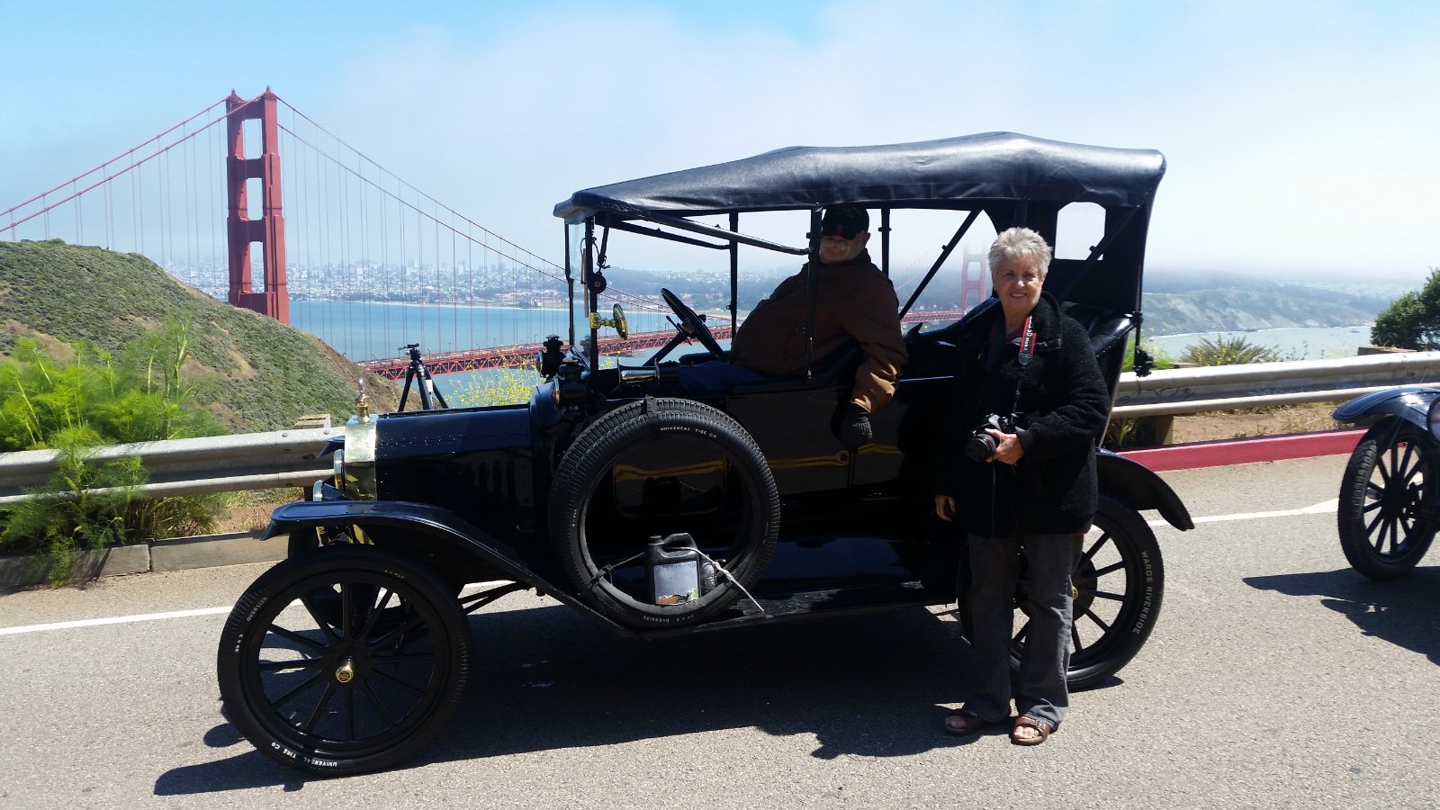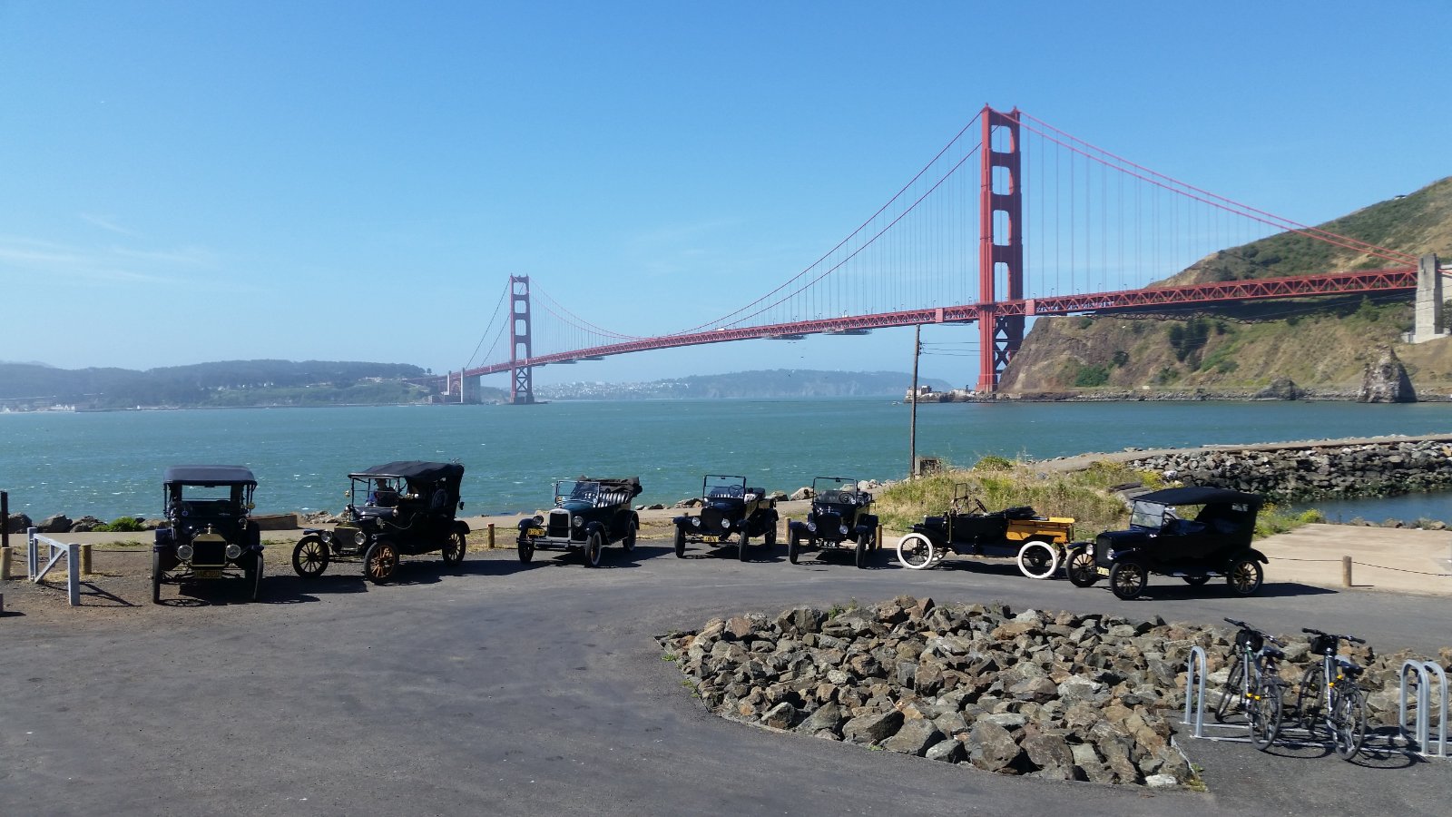 The tour was a heck of a lot of fun. Up and down hills with lots of turns on back roads. Let's rename it "The Mountain Goat Tour". Within about 30 minutes town traffic was cleared each day and off we went. Even traveling over the Golden Gate Bridge (I was very apprehensive about my T on the bridge in traffic) was amazing. The tour director had us traveling over in heavy traffic which meant that part of the time I could walk faster than traffic was moving on the bridge. Thus getting on and off the bridge through traffic was simple. Going downtown San Francisco was fun due to the routes we went. I'm glad I had Rocky Mountain brakes and a Ruckstell in my 15 Touring car and yes, I would do that tour again!