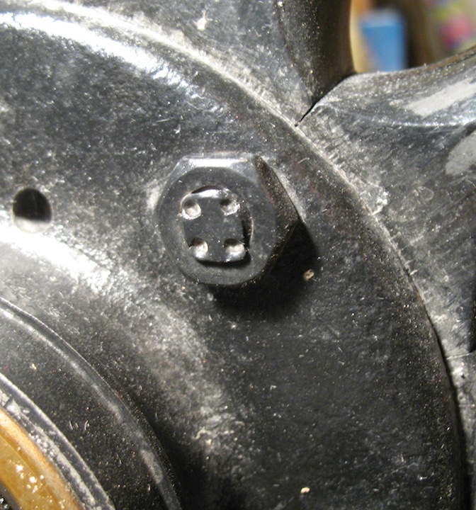 And, a bit of view of a NOS Ford wood spoke hub and note the factory way of a very short thread showing and hammer flattened to prevent the nut from backing off.