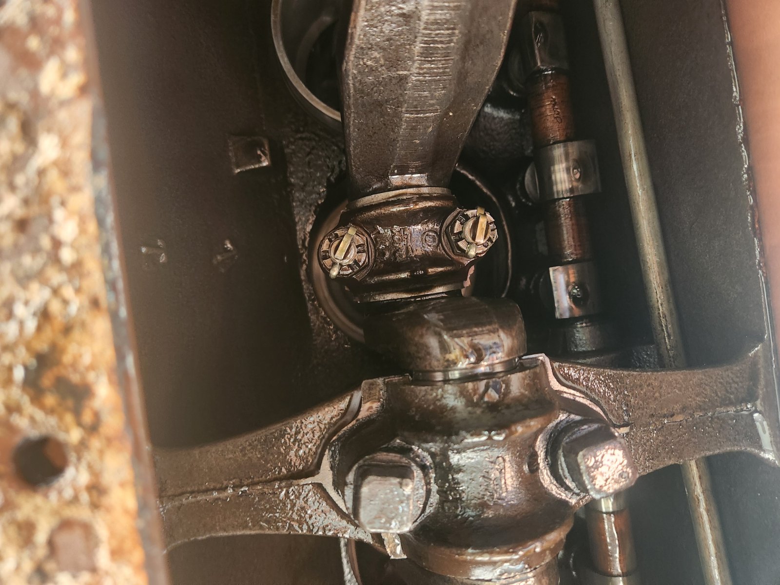 Well I found a new rod with good babbitt and after scrapping and fitting, it seems to have solved the problem (thank gosh for alloy pistons idk how you would get the bottom ring in otherwise!). Just for kicks I tried to tighten the other rods, but they locked the engine so I'm taking that as a win.
