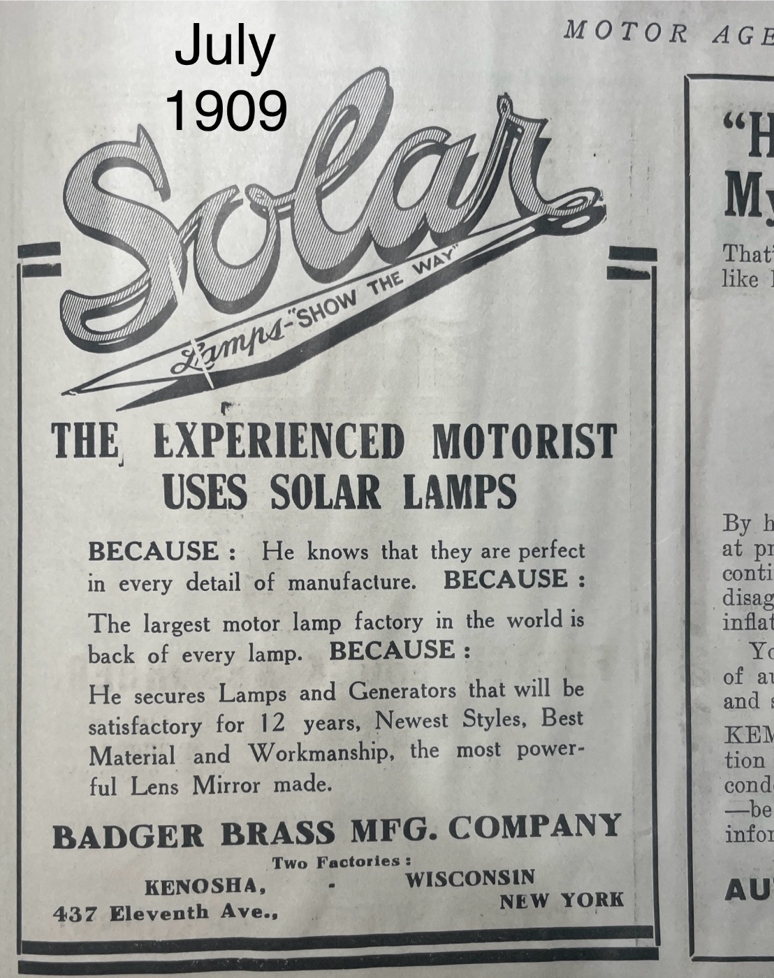 Badger Mfg. likely wasn't a Ford supplier, but Solar brand lamps were found on other early cars.\