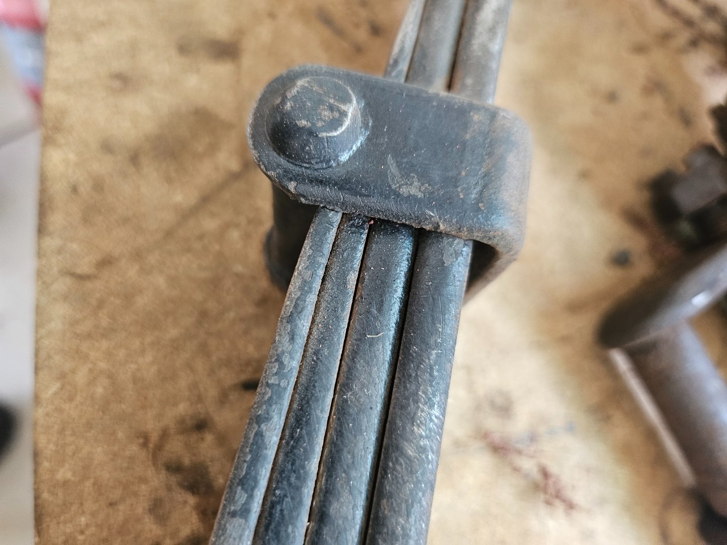 The top spring, where it mounts/sandwiches up with the spring pad & frame generally traps enough dirt/moisture to rust/pit the top spring. Daisy's still pristine enough to see manufacturer & date marks. Anyone know what the "A" references? There also appears to be other markings next to the A, but more like hand imprinted vs stamp. While she is an early '14, the spring pack itself was built July 1913.