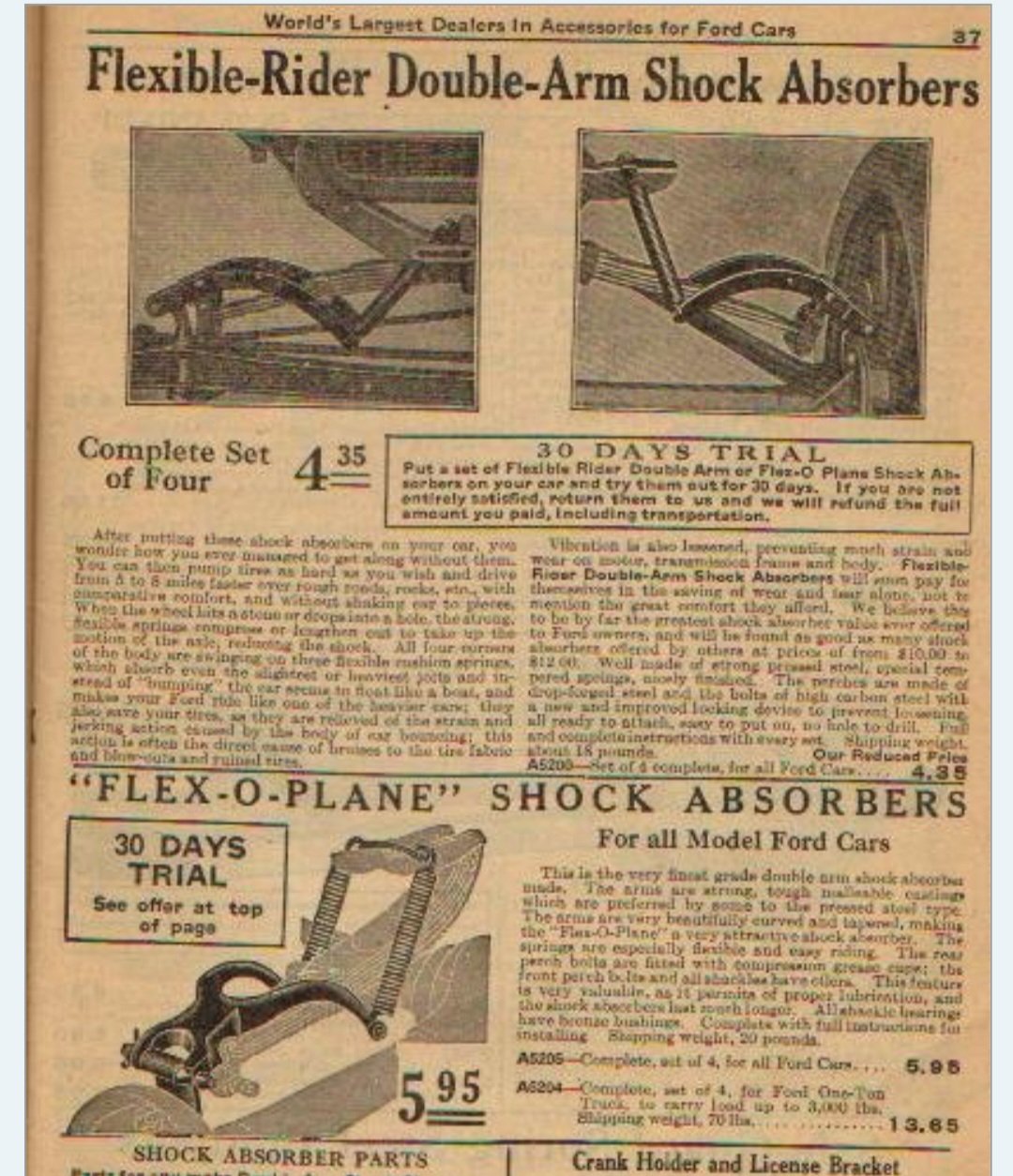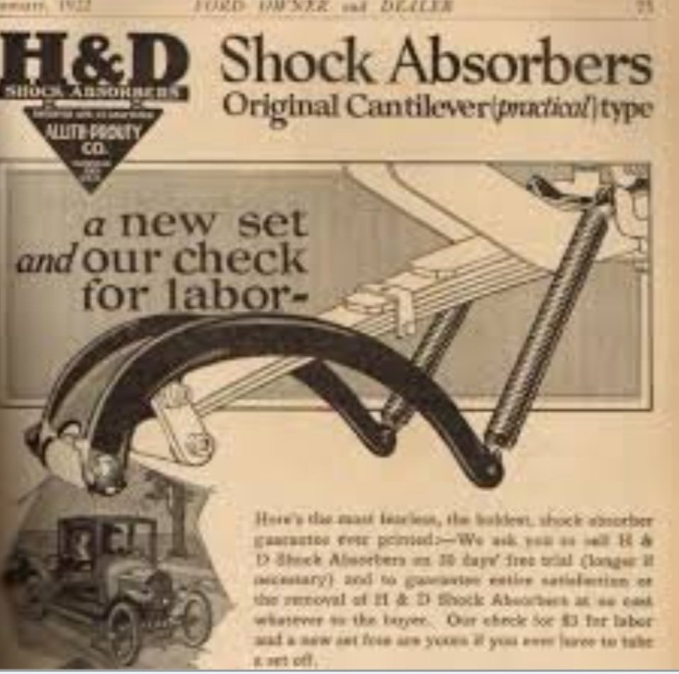 I have two sets of this type of shock absorber on my cars. They are English made by Richards Wilcox, and were part of a suite of accessories offered by Duncan and Fraser, Ford distributors for South Australia. Yours I feel are cheaper fabricated steel item rather than maleable castings.
