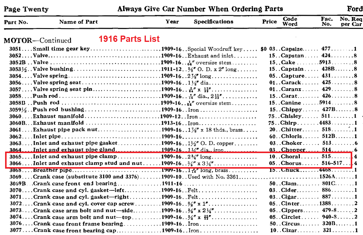 What part numbers do they have on them?Rodger Erickson wrote: ↑Sun Aug 11, 2024 12:39 amI was once told that early (brass era) manifold clamps had flat spots on the contact points (top) unlike the "later" ones (bottom) where the contact points are circular. Is this correct or is this just a variation from different suppliers?