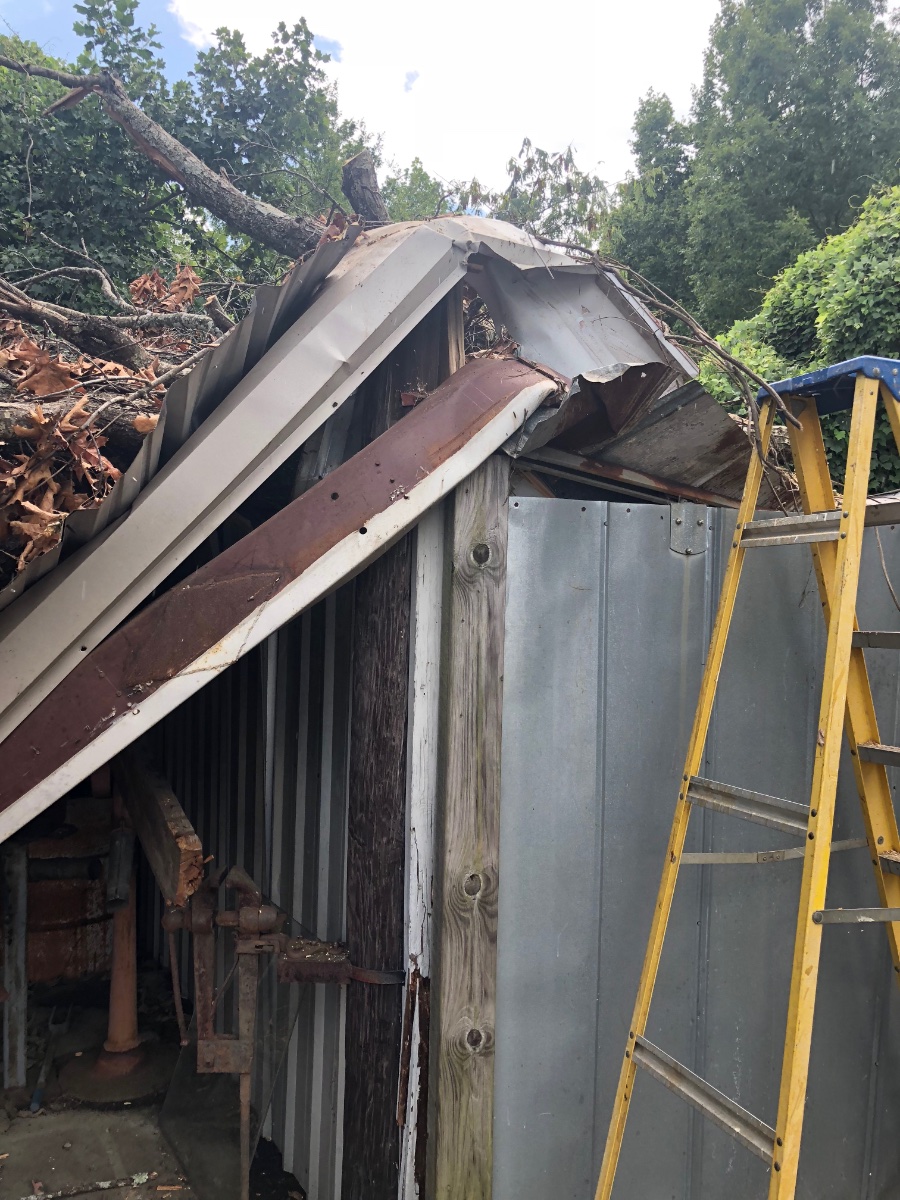 This is not off topic but shows the importance of welding techniques with the right locations. This happen a little over a month ago, a direct hit on my back shed used for items being sandblasted. The neighbors 70 foot plus board leaf oak came down during a micro burst. There is a 1987 Alfa Romeo Spider Quady in there as well, Just a little marring and the passenger side mirror took a hit.