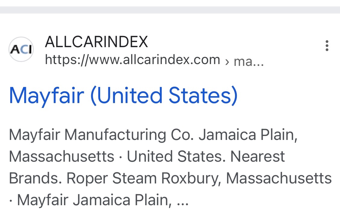 W. S. Carruthers, M. K. Coates and Frank L. Hamilton founded the company in 1925. Jesse J. Billington was also involved. Its seat was in Boston, Massachusetts, and the factory in the Jamaica Plain district of Boston. They started producing automobiles. The brand name was Mayfair. Plans amounted to 3000 vehicles per year. In the same year, production ended. A total of about ten vehicles were built
