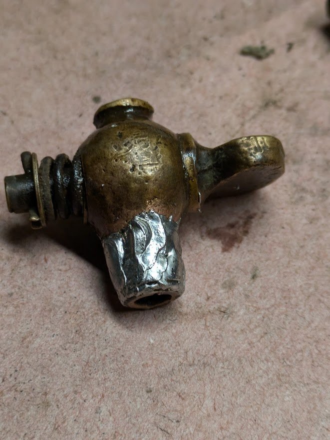 The petcock spun. Second time, layer of solder was too thick The third time worked since I removed some solder. I fitted the petcock and it was tight, but I decided that a little JB Weld was extra insurance.