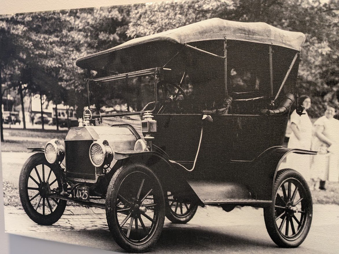 I've been spending too much time trying to figure out what year this T is. It's from a framed photo taken some time in the 30's because the car in the far distant background has fenders which were from that period. Anybody have a guess?