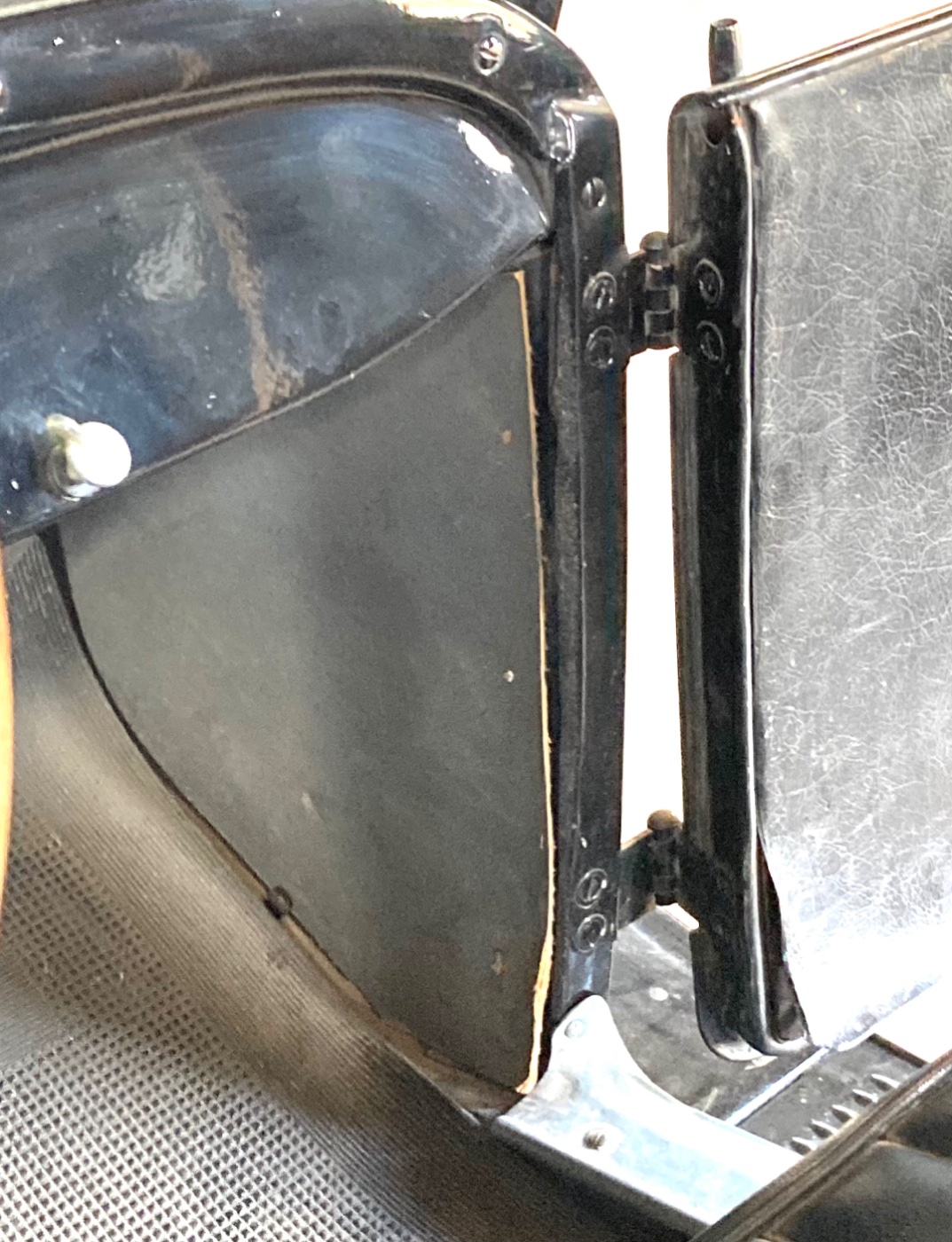 …..and how is it applied in this 1926 roadster ? There is no wood to tack to behind the kick panel.