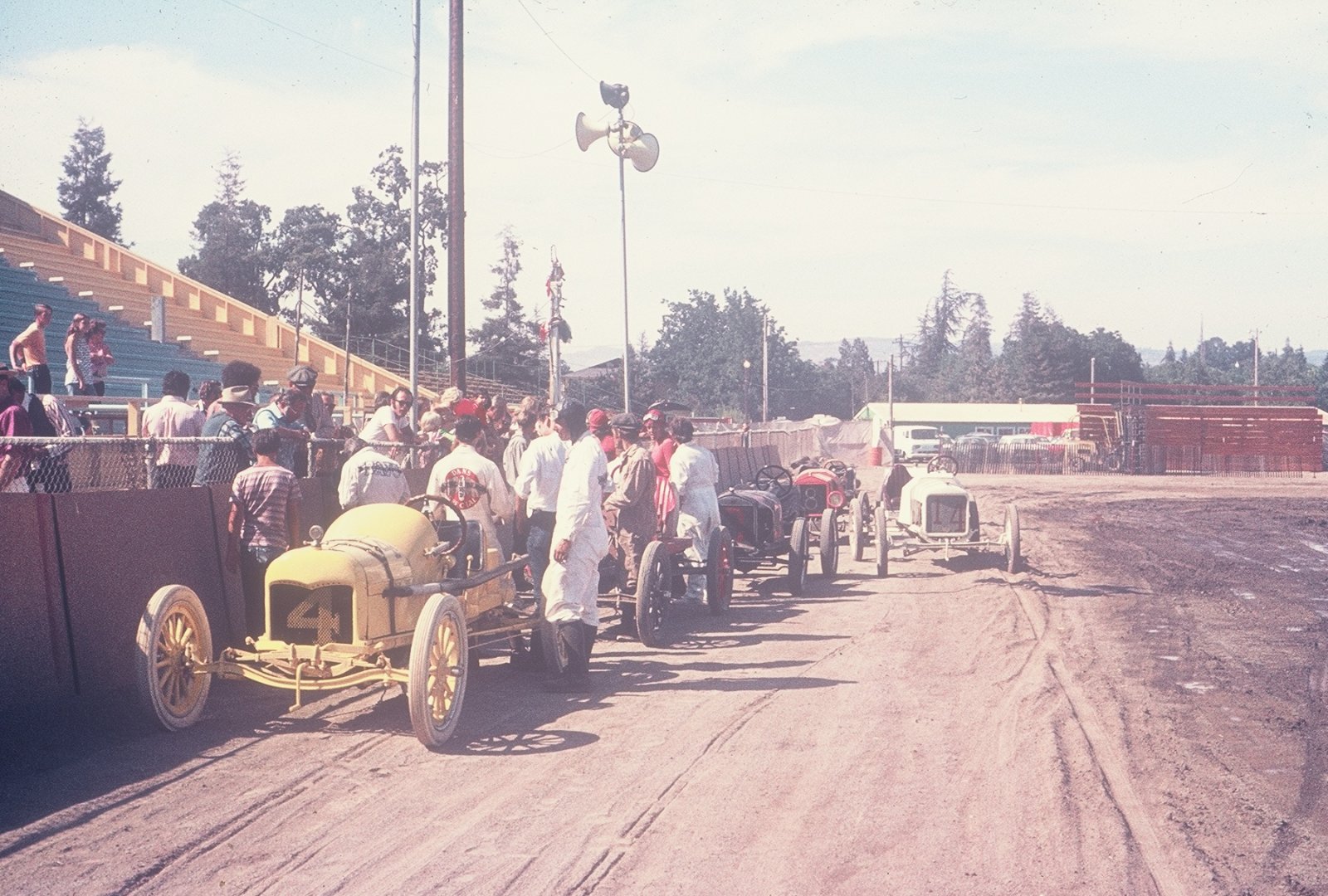 I'll try to keep this short. The Calistoga Classics ran from 1972 to 1975. It all began when I read in a publication that there was going to be some horseless Carriage races at the annual Napa fair in Napa, CA. I enquired only to find out that there was not enough participants and so it was canceled. I replied "if I could get you ten cars or so to participate would you change your mind?" The answer was yes, so I began calling friends and we pulled it off on their 1/4 mile dirt track. Rough rough track. The promoter of an upcoming antique sale saw the event and called me some time afterwords wanting to know if I could do something similar at his next sale to be held at the Napa County Fairgrounds in Calistoga, CA. on their 1/2 mile dirt track. I said yes and began calling all my speedster race car friends. The rest is history. As serious as it was, in one of the movies you see someone shooting a water pistol at the guy that was attempting a pass as they exited a turn on the back stretch. Loads of fun, beyond your wildest dreams!