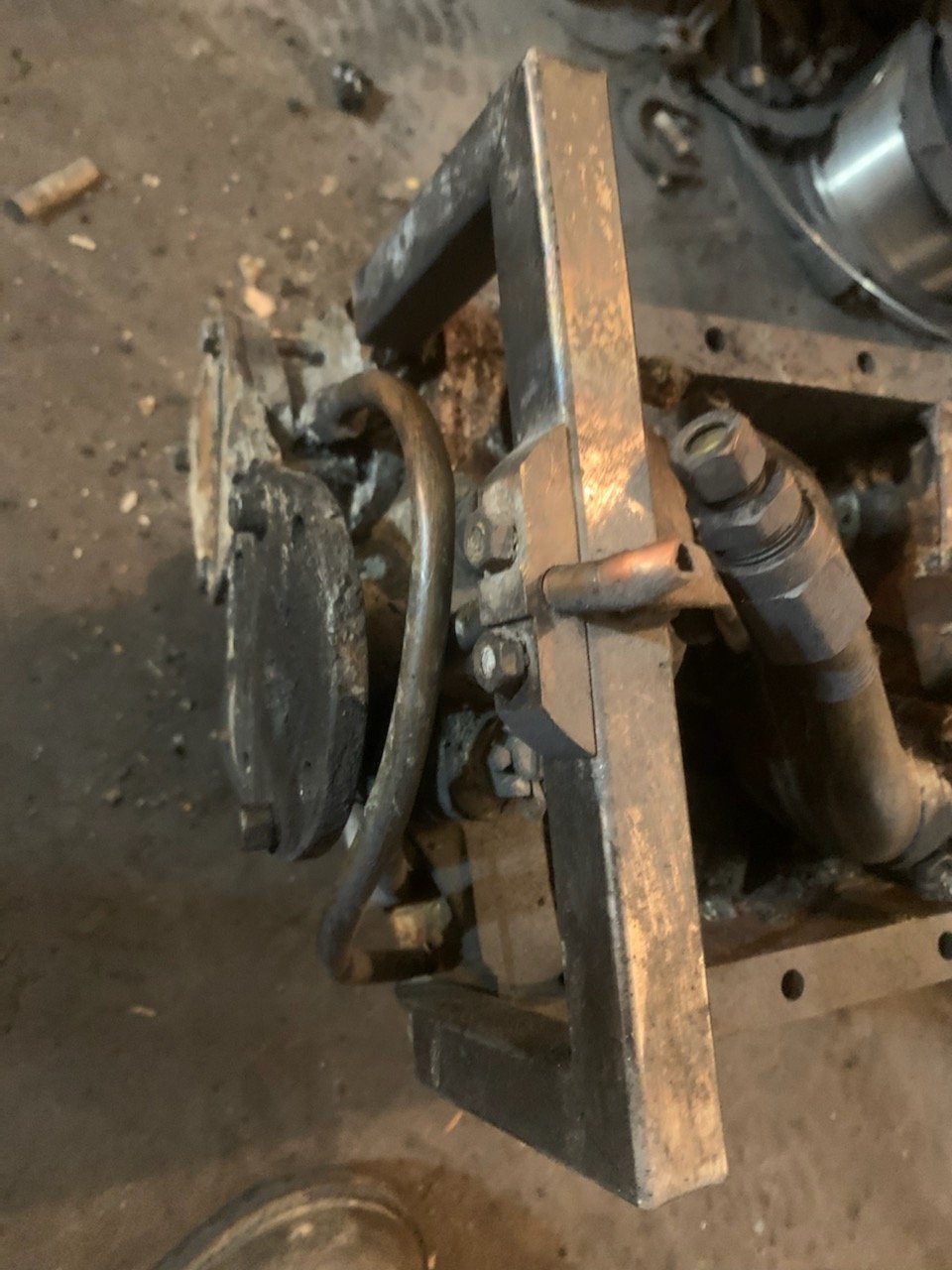 Air cooled VW oil pump. Some were set up to simply pump oil to the front to assist the splash system, while others went to full pressure bearings. The block should not have been modified too badly. Maybe just a couple extra holes