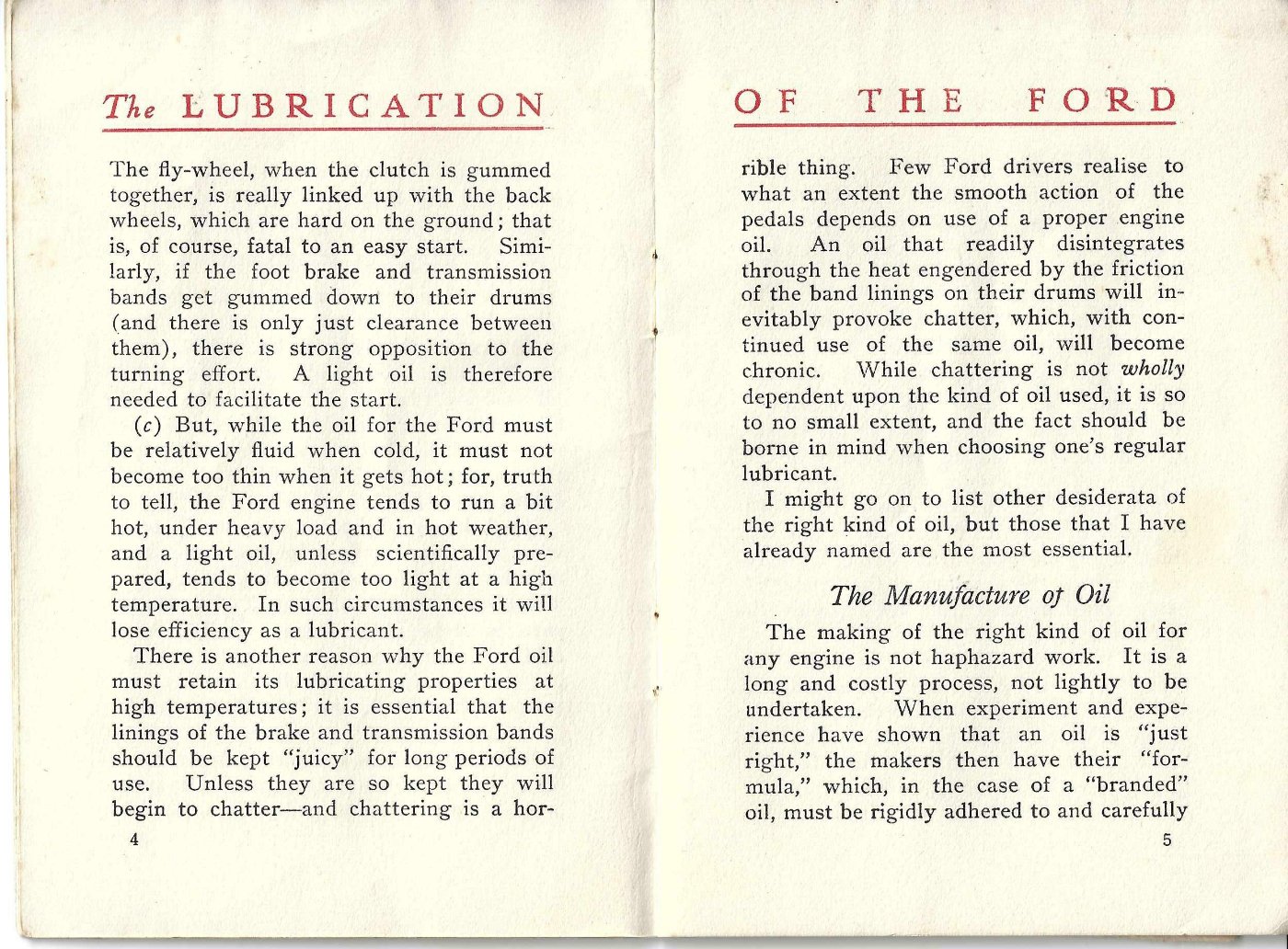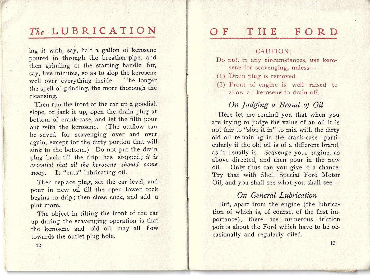 An oil company instructing Model T Ford owners to drain the oil down to the lower petcock and then adding a pint of (I presume) fresh oil is just a ruse to sell more motor oil.