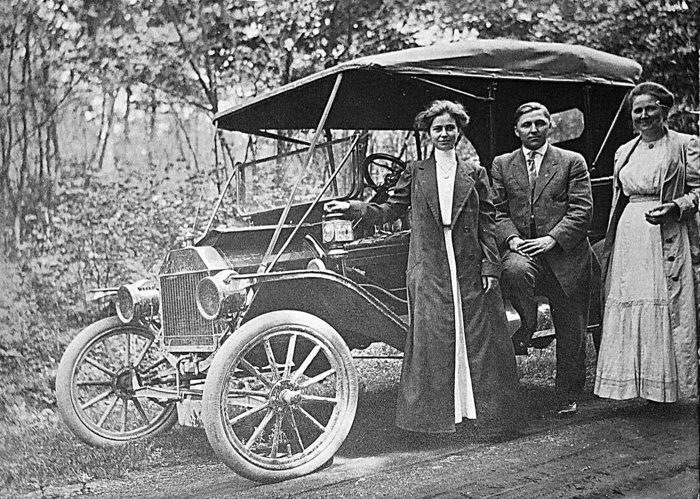 The last photo with the brass era speedster sure looks interesting. I wish I could see more of the car. It caught my eye that the spark and throttle levers may have had knobs on them, after zooming in, still not sure? However, looking closely, the headlamp brackets appear to have the cast in clipping points for top straps. A 1912ish feature that went away about the same time as the S/T knobs.