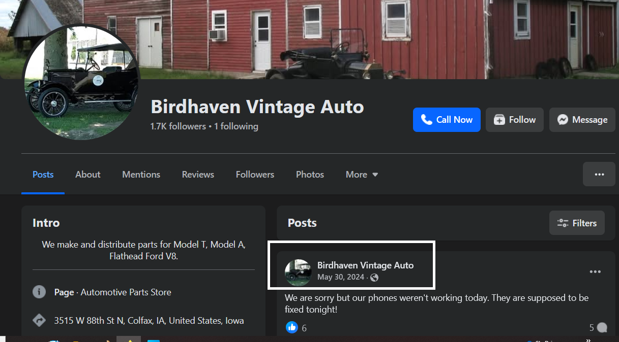 It might be called Birdhaven Vintage Auto. I think they are on Facebook or use to be.