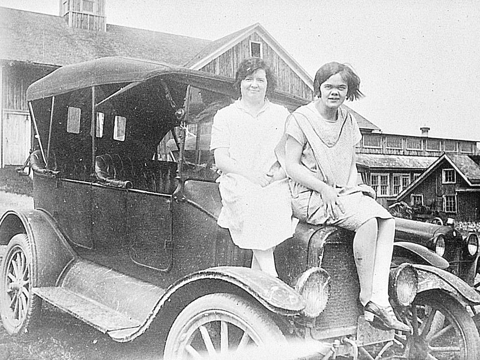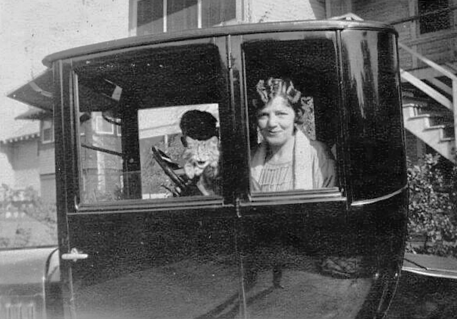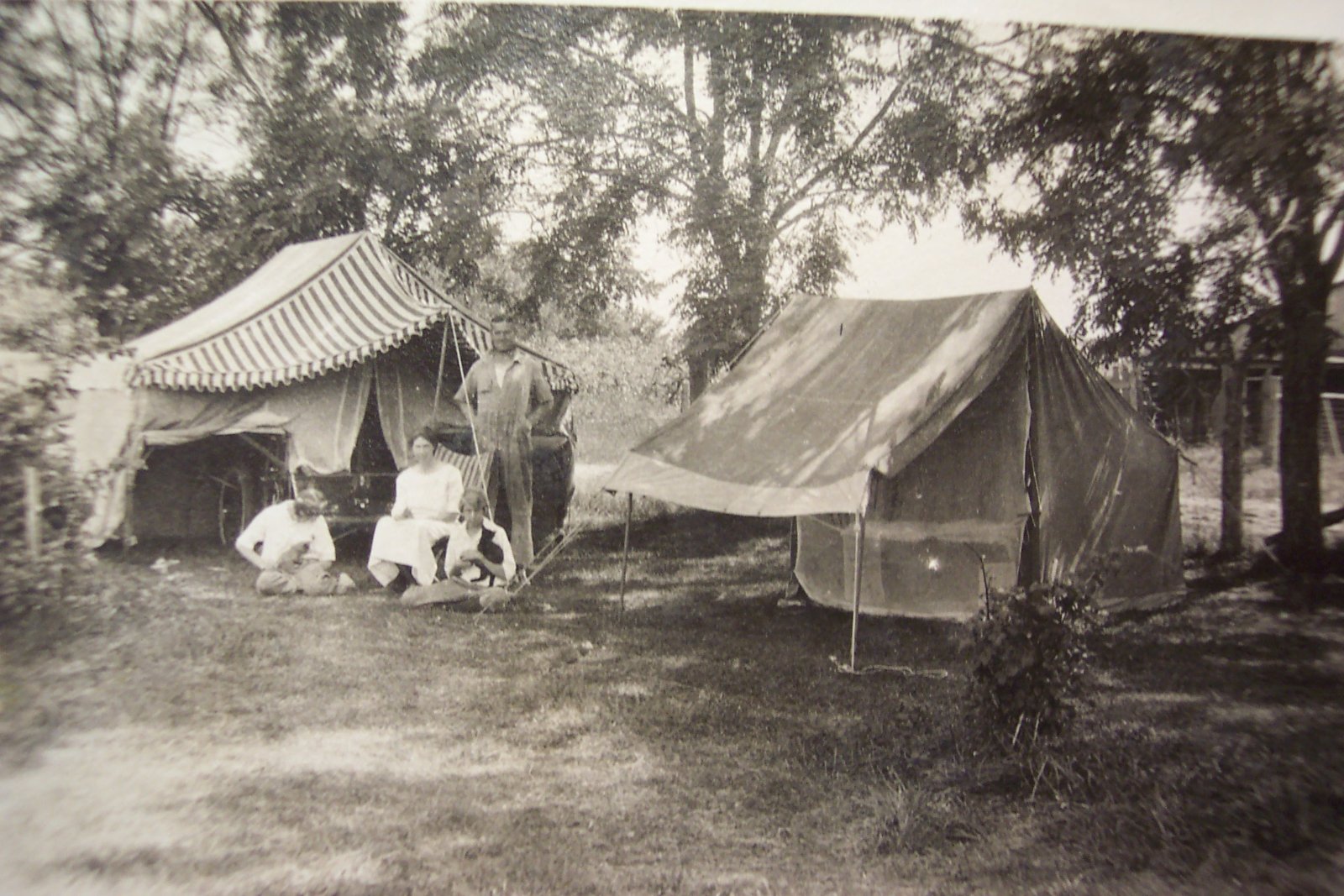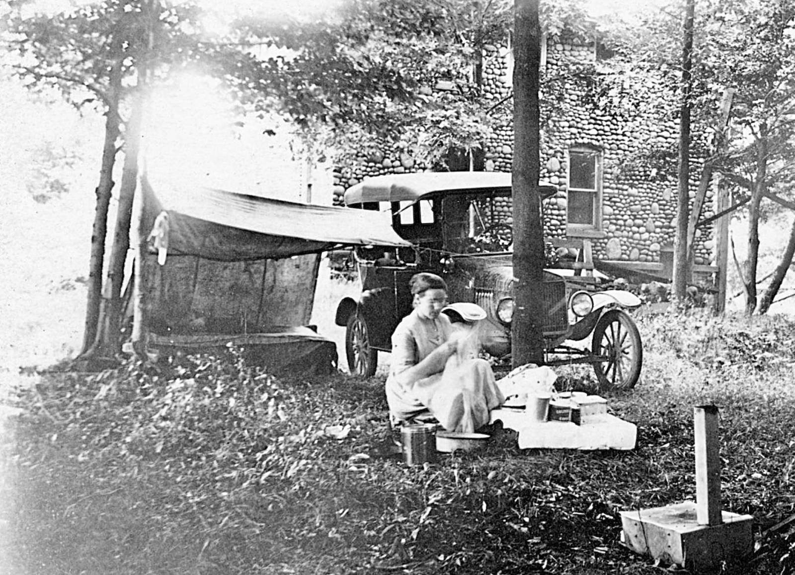 This photo is of my AutoKamp trailer and Stoll tent gifted to me by the young lady holding the black cat. It was taken in their back yard shortly after purchasing them 1924. Les