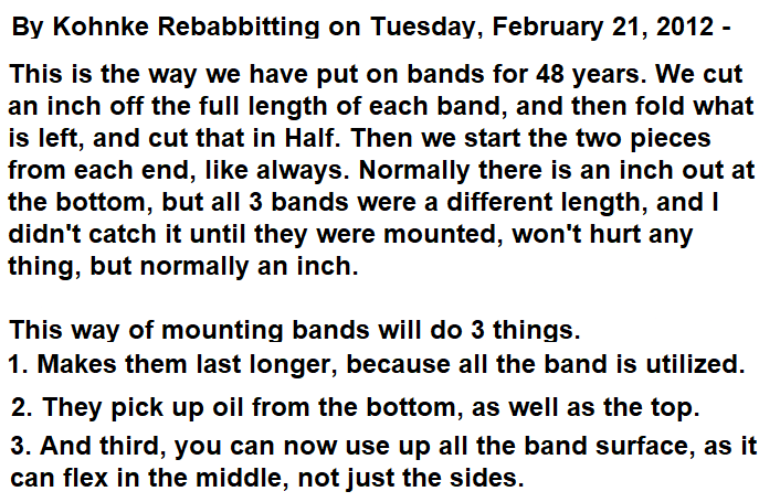 Most of the CANTEX bands were a bit cut short. I have set that wasn't. But in any case here is an option that would make them usable. Some interesting thought is they grip like brake linings, since there is less restriction in the 9 o'clock position and provide lubrication top & bottom