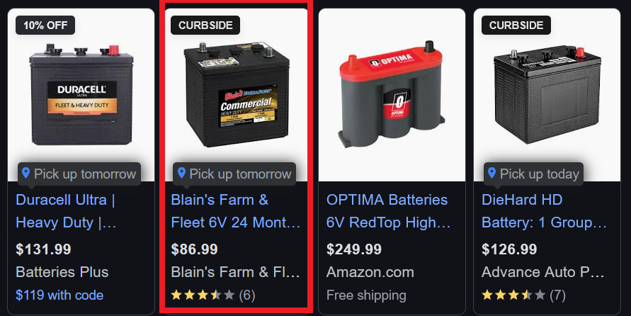 Since there are only 3 Major Battery Manufacturers in the USA (Johnson Controls, Stryten, and East Penn) branding batteries for different retailers its a tie. Cold Crank spec is not the measure to use for a Model T. Reserve Capacity & Ah are good comparisons to Battery Cost