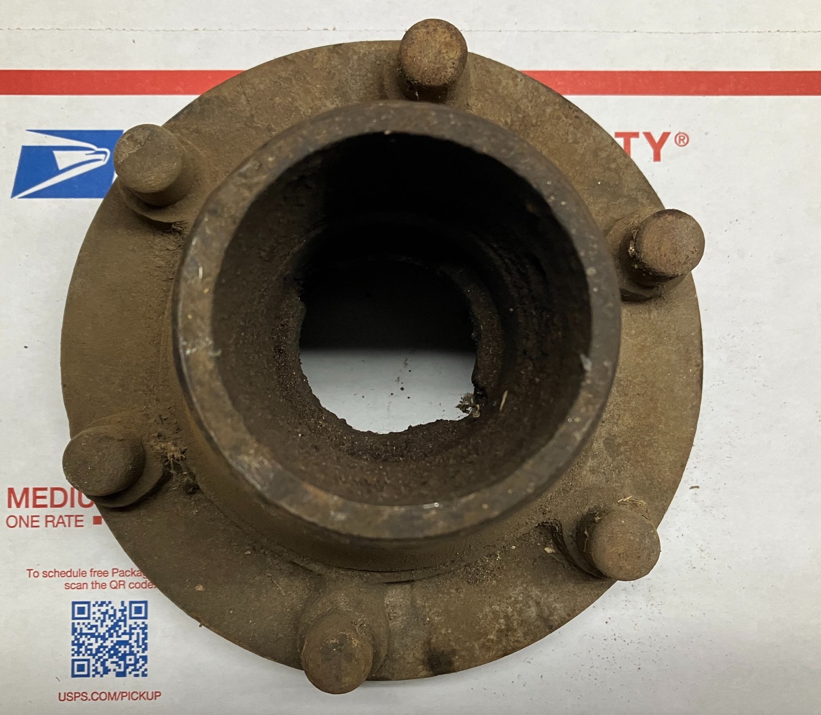Cleaning out the top of the barn. Foreign to me. Threaded portion measures 3"- 10 TPI. Large flange is 7 3/8". Overall height 6". Rear bearing hub diameter is 3 1/8". What manufacturer, what size? Thanks!