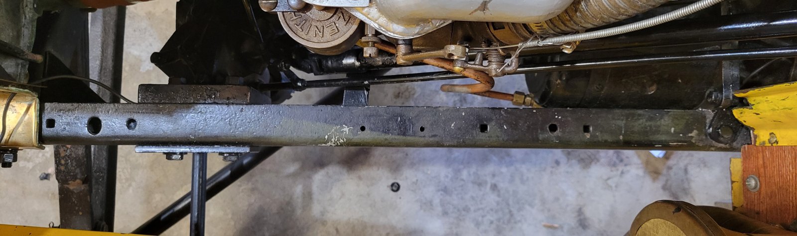 The hood shelves on my 1915 (which should be painted black) have the hood latches on the outboard ends and the 1/4" carriage bolt that anchors in through the top and bottom channel of the frame are on the inside.