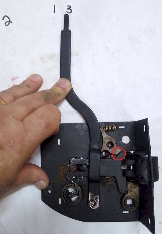The fold in the spring no longer pushes into the detent location. The latch is now in Position 1.