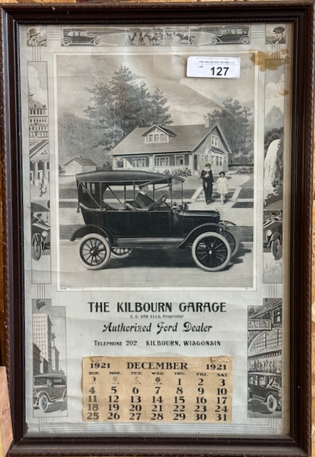 This showed up at a local auction yesterday. The calendar is 1921, so I assume it would have been produced in 1920. The car shown has side lights and non-demountable rims, so a car without a starter. I dropped out at 200.00! Neat item.