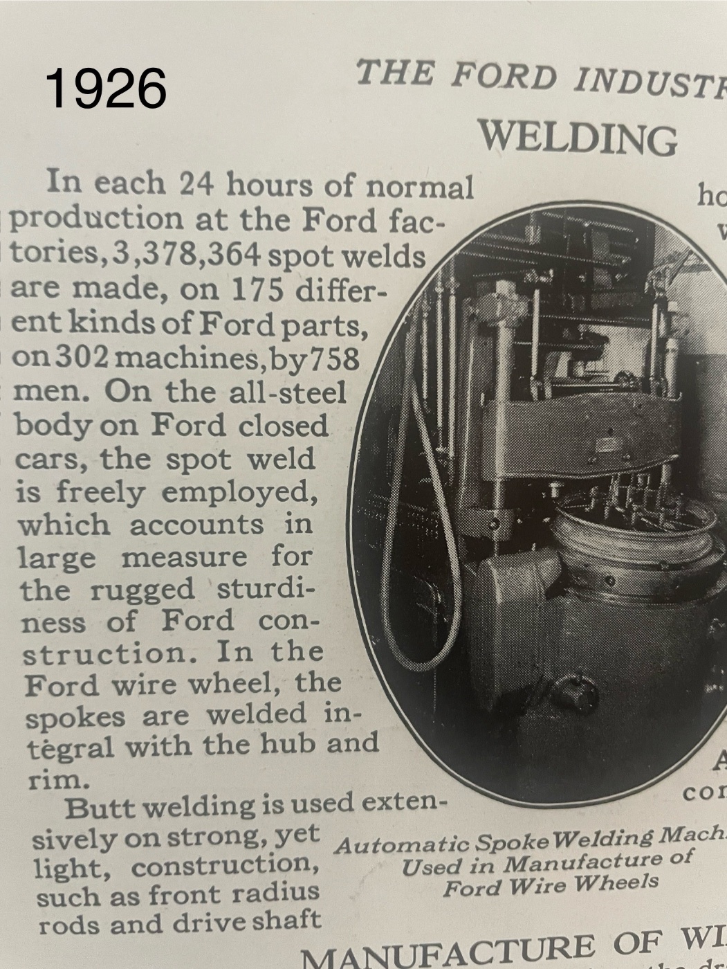 Absolutely Ford used spot welding. The body of my 21 Touring was joined together at the lower section at the rear doors using three spot welds. And by the way the spot welds were pretty good. You could barely see them when Ford painted the bodies.