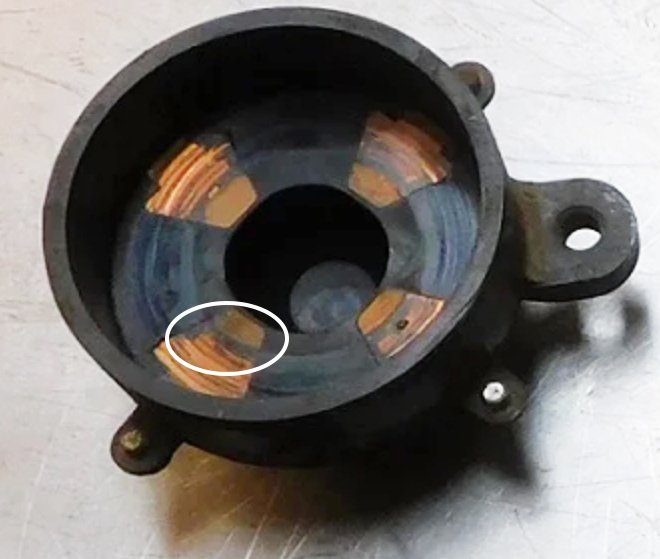 Here is the timer cleaned up: As you can see, the brush has been running right at the forward edge of the timer. I removed 1mm from the back of the brush holder so it is closer to the engine now and while it is not completely centered on the segments, it is now more centered.