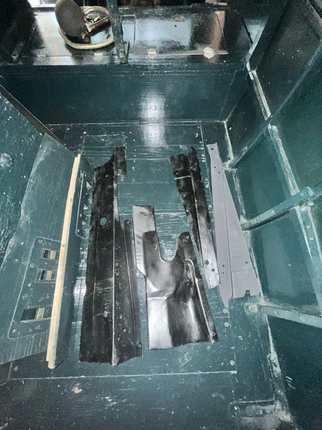 Appear to be some type of engine compartments pans & a set of '26 - '27 hood shelves. Nice rig, by the way !