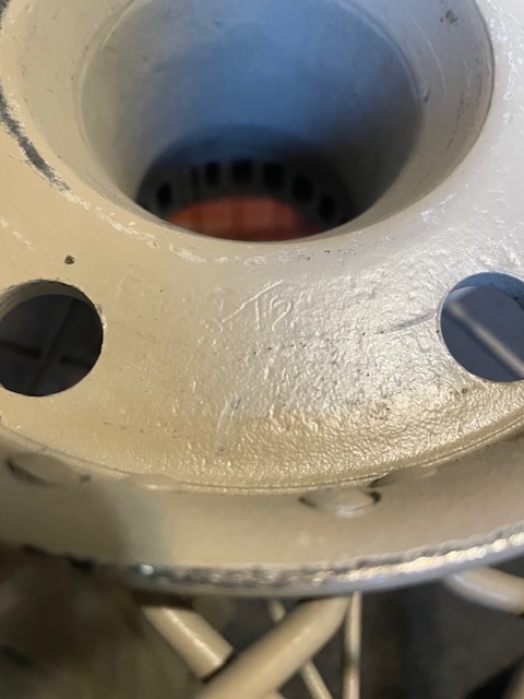 I looked at the wheels. One has what appears to be a poorly stamped “11” another has a poorly stamped “12” within a diamond (see pictures). I have also thrown in a shot of one of the wheels and the inside of a wheel hub.