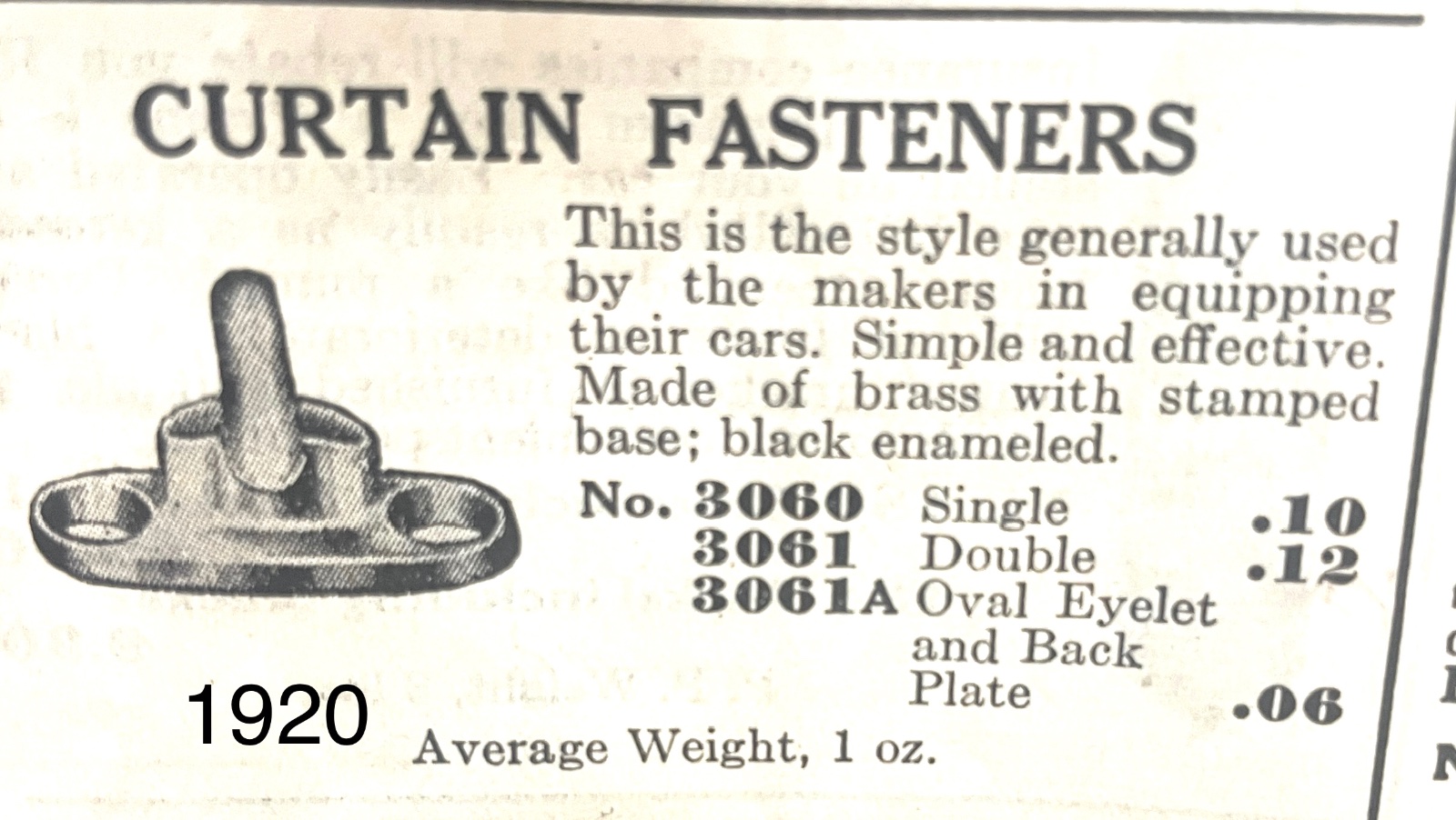 Auto supply catalogs of the period list Common Sense type fastener in all brass, and brass with black enamel paint.