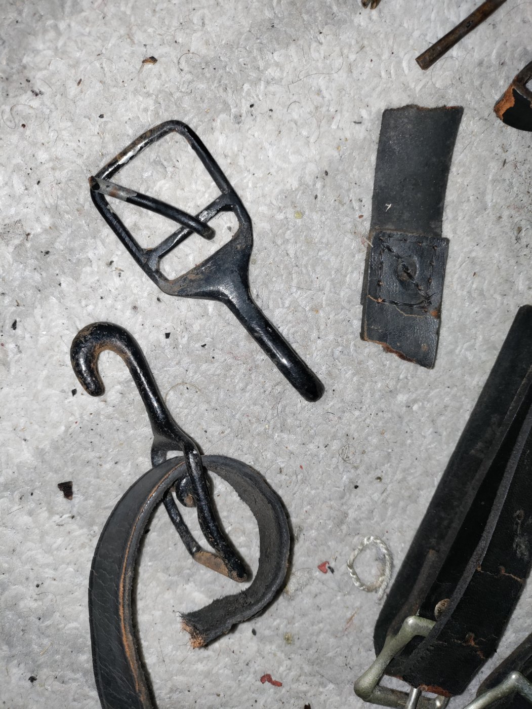 The correct front and rear straps for 1917 are cotton webbing, not leather. The hooks and buckles shown in your photos won't work with the cotton webbing. The correct hooks and buckles are serrated.