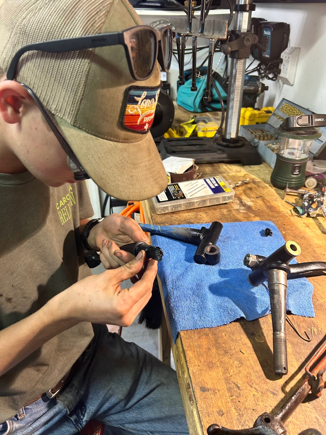 Luke swapped out the Holly carb for this unique Rayfield (Pat. 1911) and intake manifold. We don’t know much about it. The needle tip needed repaired. Lots of adjustment options but it’s running and driving well with it.