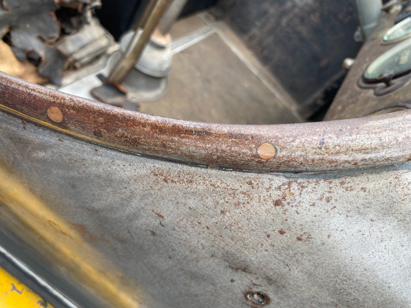 In the Orange field at Hershey were two 1922 Mercers. On the semi restored Mercer was a 1/2 oval steel trim riveted along the edge of the cowl. Looks like brass or copper rivets. See photos. This was typical for a 1920's era car and used on one of my original speedster bodies.